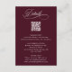 Diese bordeauxrote und weiße Hochzeitskarte mit eleganten und romantischen Wirblen Kalligraphiebuchstaben mit QR-Code. Passen Sie diese Karte an, indem Sie Informationen zu Ihrer Hochzeit hinzufügen, einschließlich Empfang, Unterkunft und Website. Ideal für jede Jahreszeit. Für eine weiter gehende Anpassung dieses Designs klicken Sie bitte auf den BUTTON BLAU DESIGN TOOL oben!