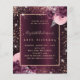 Ein weinroter Hintergrund mit bordeauxroten und rosafarbenen Blumen, Blume und Imitaten, silberner Glitzer, Glitzern. Personalisieren Sie Ihren Namen und Ihre Party-Daten und fügen Sie diese hinzu. Rose goldfarbener Text.