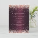 Für einen eleganten 21. Geburtstag (oder jedes Alter). Eine burgundische Hintergrundfarbe. Dekoriert mit Rose Gold Konfetti. Personalisieren und fügen Sie Namen, Alter und Party Details hinzu.