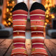 Ein schönes gestreiftes Sockenpaar in Bordeaux- und Elfenbeinfarben mit winzigen Goldlinien der Rose und (optional) goldenen Sternen. Schön zu Weihnachten.