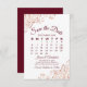 Burgund & Rose Goldene Spitze Hochzeitskalender Save The Date