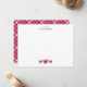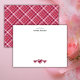 Die Vorderseite ist weiß mit einem sauberen schwarzen personalisierten Namen am oberen Rand der Karte. Unten befinden sich drei ordentliche spitzenartige Herzen in einem tiefen Burgundrot-Ton. Der Look ist einfach, modern und warm. Die Rückseite zeigt ein Retro-Valentinstag-Tartan-Muster in Burgundrot, das der gesamten Karte ein klassisches und gemütliches Gefühl verleiht. Hervorragend für kurze Notizen, alltägliche Nachrichten oder ein persönliches Geschenk.