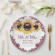 Dekorieren Sie Ihr weinbordeauxrotes Land, Ihren Garten, den Hinterhof oder Ihre Brauerei mit diesen eleganten, rustikalen Sonnenblumenblumen Hochzeitszettel-Tellern mit Sonnenblumenblumen, Blume, Lichtern und Blumenspitzen. Passende Artikel zur Ergänzung dieser bordeauxroten rustikalen schicken Hochzeitszeitung Teller. Individualisieren Sie sich ganz einfach auf jeden Anlass.