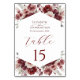 Burgund Rustikale Herbstblütenhochzeit Tischnummer