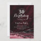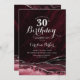 Burgund und Silber über 30. Geburtstag Party Einladung. Elegantes modernes Design mit Marsala-Wein, dunkelrote Aquarellfarben aus Marmorgeode Hintergrund, Imitate Glitzer Silber und Typografie Drehbuch Schriftart. Die trendige Einladungskarte eignet sich perfekt für eine stilvolle Damenfeier. Gedruckte Zazzle Einladungen oder Sofortdownload digitalen druckbaren Vorlage.