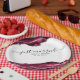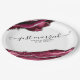 Elegantes Design mit bordeauxrotem und silberfarbenem Trennrahmen und modernem, individualisierbarem diagonalen Skript auf weißem Hintergrund.