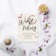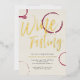 Goldfolien Weinprobe Party Einladung in weißlicher Farbe mit bordeauxfarbenen Weinflecken und einem stilvollen Pinselskript.