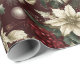 Weiße Poinsettien, rote Beeren und silberne Ornamente bedecken in diesem klassischen, blumengeschmückten Weihnachtspapier einen tiefburgundischen Hintergrund.