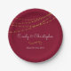 Burgundy Marsala und Imitats Gold Foil String Lights Hochzeiten Teller für einen eleganten Hochzeitstag Empfang oder Probe Dinner. Name und Datum können auf dieser Platte aktualisiert werden.