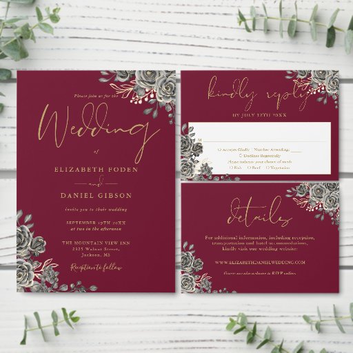 Burgund und Gold Gothic Foto Hochzeit Einladung