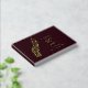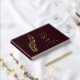 Ein schönes Goldfolie 50 Jahre Hochzeitstag Gästebuch in einer tiefen Bordeaux mit einem Blumenblatt vorne und hinten. Die Namen von Braut und Bräutigam sind auf der Vorderseite in Goldfolie sowie in den Hochzeitsterminen.