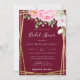 Eine elegante Blumendusche mit rosafarbenen Aquarellfarben-Blume und moderner handgeschriebener Kalligraphie auf bordeauxrotem Hintergrund.