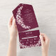 Burgunder und weißer, blumengeschmückter Mondgarten mit Herzen Hochzeit All in One Invitation. Im Mittelpunkt steht dabei die wunderschöne weiße Gartenanlage. An den Kanten ist auch ein Goldkonfetti. Die UAWG ist abnehmbar.