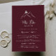 Dieser bordeauxrote, weiße Berg, den wir wieder versprechen, ist perfekt für ein rustikales Ereignis. Das Design zeichnet sich durch handbemalte klare Berge aus.