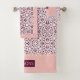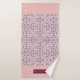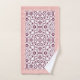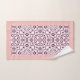 Burgundy-Weiß Damast-Muster und rot-rosa geschmolzenen Rahmen Bath Handtuch Set. Das Badetuch weist ein elegantes, bordeauxrotes und weißes Damast-Muster auf, und die kurzen Seiten sind mit rosa Streifen mit geschliffenen Kanten versehen. Es gibt auch einen Rahmen mit Ihrem Familiennamen. Das Handtuch zeigt eine geschossene Ränder um sich herum, während das Schlagtuch in der Mitte rot ist, mit einem bordeauxfarbenen Damast-Rahmen und Ihrem Monogramm. Sie können es mit Ihrem Familiennamen und Monogramm personalisieren.