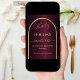 Eine Save the Date Karte für eine 90. Geburtstagsfeier. Ein bordeauxroter Hintergrund mit einem goldenen Bogen aus Imitaten. Personalisieren und fügen Sie ein Datum und Ihren Namen. Der Text: Neunzig und Save the Date ist mit einem großen trendigen handgeschriebenen Stil geschrieben.