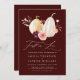 Die Einladung zu einer Hochzeit mit Aquarellfarben-Blume in Bordeaux, Mond und Rosa, mit Herbstlauben und Details auf der Rückseite. Für eine weiter gehende Anpassung dieses Designs klicken Sie bitte auf den Link "Weitere Anpassung". Matching-Elemente sind ebenfalls verfügbar.