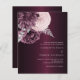 Ein weinroter Hintergrund mit bordeauxroten und rosafarbenen Blumen, Blumen und wunderschönem silberfarbenem Blattwerk. Personalisieren und fügen Sie Ihre Namen und Hochzeitsdetails. 1 Blatt = 1 Einladung mit Druckkante bis Kante.