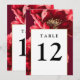 Die Tischnummern sind elegant bordeauxrot und mit goldblühenden Blumen gestaltet und eignen sich perfekt für alle Feierlichkeiten. Entwickelt von Thisisnotme©