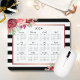 Dieses elegante Jahr auf einen Blick bietet das Kalendermauspad 2024 ein modernes, florales Aquarelldesign mit bordeauxroten und Rose rosa Blume und schwarz-weiß Streifen mit Imitaten Rose Gold.