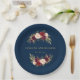 Burgunderblumenmarine-Blau-rustikaler Polterabend-Papierplatte