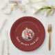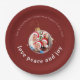 Burgunderrote Weihnachtsfamilienfoto Liebe Frieden Pappteller