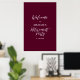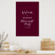 Herzlich willkommen zu einem besonderen Feiertag mit diesem stilvollen bordeauxroten und weißen Begrüßungsschild. Dieses Plakat mit moderner Typografie "Welcome to Retirement Party" mit einem einfachen Layout. Sie können den Namen und das Datum anpassen. Passende Einladungen und Party-Vorräte sind in meinem Shop BaraBomDesign erhältlich.