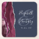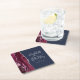 Dieser elegante, moderne Untersetzer besticht durch ein bordeauxrotes Aquarellbild mit Geodedesign, das mit Imitaten silbernen Glitzer bestickt ist. Einfach den silbergrauen Text auf einem marineblau-blauen Hintergrund anpassen, mit den Namen der Paare in handgeschriebener Kalligraphie über einen großen Ampersand.