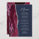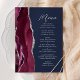 Burgundy Agate Silver Script Navy Blue Wedding Menükarte