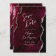 Burgundy Agate Silver Script Wedding Save the Date Einladung