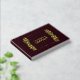Eine schöne Goldfolie Hochzeitsgast-Buch in einer tiefen Bordeaux mit einer Blumenfront und Rechteck in Goldbride und Bräutigam Namen sind am Ende in Goldfolie, sowie