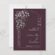 This save the date pairs moody elegance with modern symmetry. A deep wine background sets a romantic tone, while the upper left corner blooms with florals in rich wine, soft lavender, and muted sage green—lush and painterly against the dark canvas.