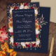 Burgundy Blumen auf Beige auf marineblauen Herbstfarben Laub Hochzeitseinladung für eine romantische Hochzeitseinladung.