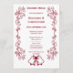 Burgundy Bells Scrollwork Design Wedding Menükarte