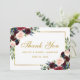 Watercolor Floral Burgundy Marsala Blue Gold Hochzeit Dankeschön Karte - Burgundy Back