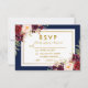 Burgundy Blue Gold Floral Wedding RSVP