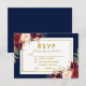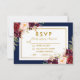 Burgundy Blue Gold Floral Wedding RSVP Karte