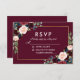 Burgundy Blue Watercolor Floral Gold Wedding RSVP
