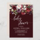 Das Design besticht durch schöne, in Aquarellbordeauxtönen gehaltene Blumenelemente in Rosatönen, violetten Blumen und Lichtern.