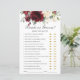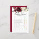 Feiern Sie Ihr Brautparty mit dieser lustigen Braut oder Groom Guess Who Said It! Personalisieren Sie dieses Spiel mit Ihrer eigenen Formulierung! Drücken Sie einfach die Schaltfläche Anpassen, um den Stil und die Platzierung des Textes weiter zu verändern und zu formatieren. Entworfen, um unsere rustikale Burgunder Blumensammlung zu ergänzen. Passende Artikel im Shop erhältlich! c) das Happy Cat Studio.