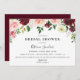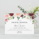 Elegante bordeauxfarbene Blumengrenze, Brautdusche Einladung. Die Karte verfügt über eine solide bordeauxrote Farbunterlage, schicke Typografie-Designvorlage. Entworfen, um mit unserer Botanischen Flora Kollektion Burgundy Blush zu koordinieren.