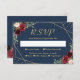 Burgundy Blush Navy Blue Floral Gold Glitzer RSVP Karte