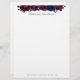 A watercolor floral letterhead stationery featuring watercolor-painted sapphire blue and burgundy peonies with navy blue eucalyptus greenery.
