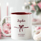 Burgundy Bow Bridesmaid Script Modern Name Date Zweifarbige Tasse