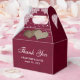 Setzen Sie Ihre Brautparty-/Hochzeitsgeschenke in diese romantischen, bordeauxroten Gaumenkästen mit Spitzen- und Saitenbeleuchtung auf einem eindrucksvollen Hintergrund.