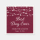 Diese bordeauxroten, rustikalen Hochzeitspapierservietten mit einem Burghintergrund mit Lichtern aus der Saite sind ideal für eine burgundische rustikale Land-, Hinterhof- oder Scheunenhochzeit. Diese Servietten können Sie ganz einfach mit Ihren Hochzeitsdetails personalisieren.