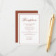 Mit dieser eleganten Empfang-Karte stärken Sie sich bei Ihrem Hochzeitsgeschenk und präsentieren ein weinrotes weinfarbenes Thema sowie eine stilvolle und elegante Palette. Diese Karte ist mit einer stilvollen Kalligraphie-Schrift und klassischer formaler Typografie gestaltet und strahlt zeitlose Eleganz aus. Mit einem QR-Code für die Details der Hochzeit leitet es die Gäste zu Ihrer Hochzeitswebsite UAWG für ein nahtloses, modernes Online-Erlebnis. Teilen Sie einfache Gastunterkünfte und wesentliche Informationen Details Web mühelos, sodass Schönheit und Funktionalität verschmelzen.