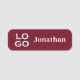 Dieses berufliche individuelle Name-Tag zeichnet sich durch ein einfaches Design auf bordeauxfarbenem Hintergrund aus. Auf dem links wird ein Muster-Firmenlogo oder ein Firmenlogo gedruckt, auf dem rechts ein Muster-Mitarbeitername oder ein Mitarbeitername aufgedruckt ist.