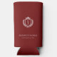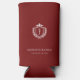 Celebrate your wedding in style with this personalized burgundy wedding can cooler favor. Featuring a classic crest with the couple’s stacked initials, this elegant design keeps drinks cold while adding a touch of sophistication to your reception or cocktail hour.