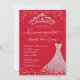 Modern Glam Burgund Maroon Red Diamond Tiara Princess Gown Dress Glitzer Sparkle 15. Geburtstag Quinceanera Einladung